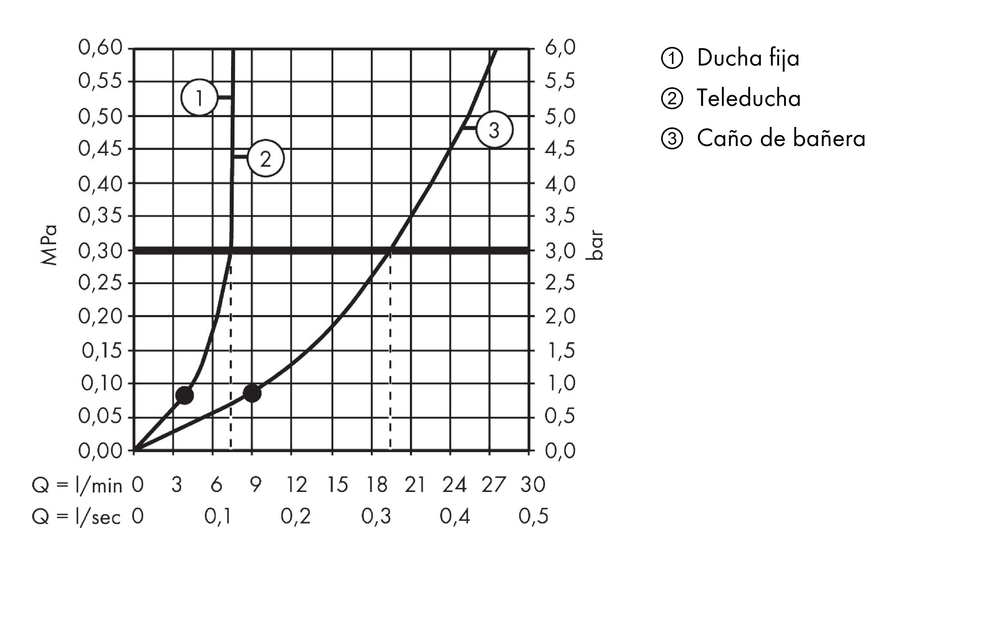 - Caudal máximo para Showerpipe a 3 bar: 8 l/min